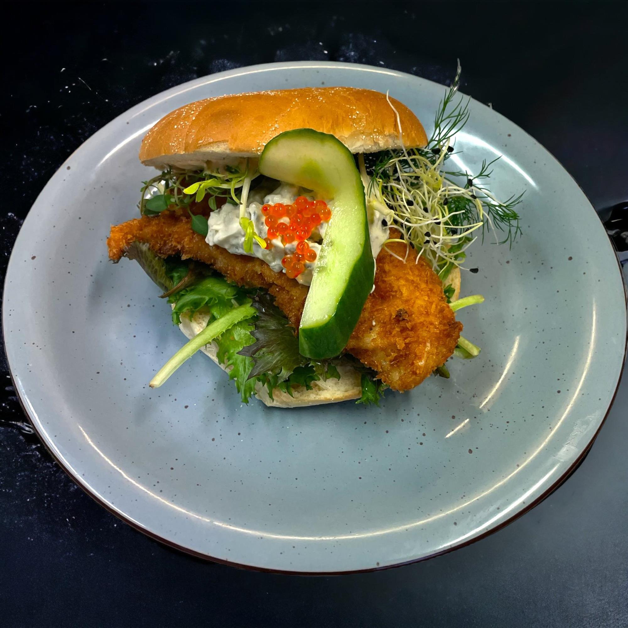 Prøv vores lækre sandwich med panko-panerede kuller , toppet med tangy tatarsauce og friske grøntsager. Den saftige kuller er indhyllet i en sprød panko-panering, der tilføjer en ekstra crunch til hvert bid.