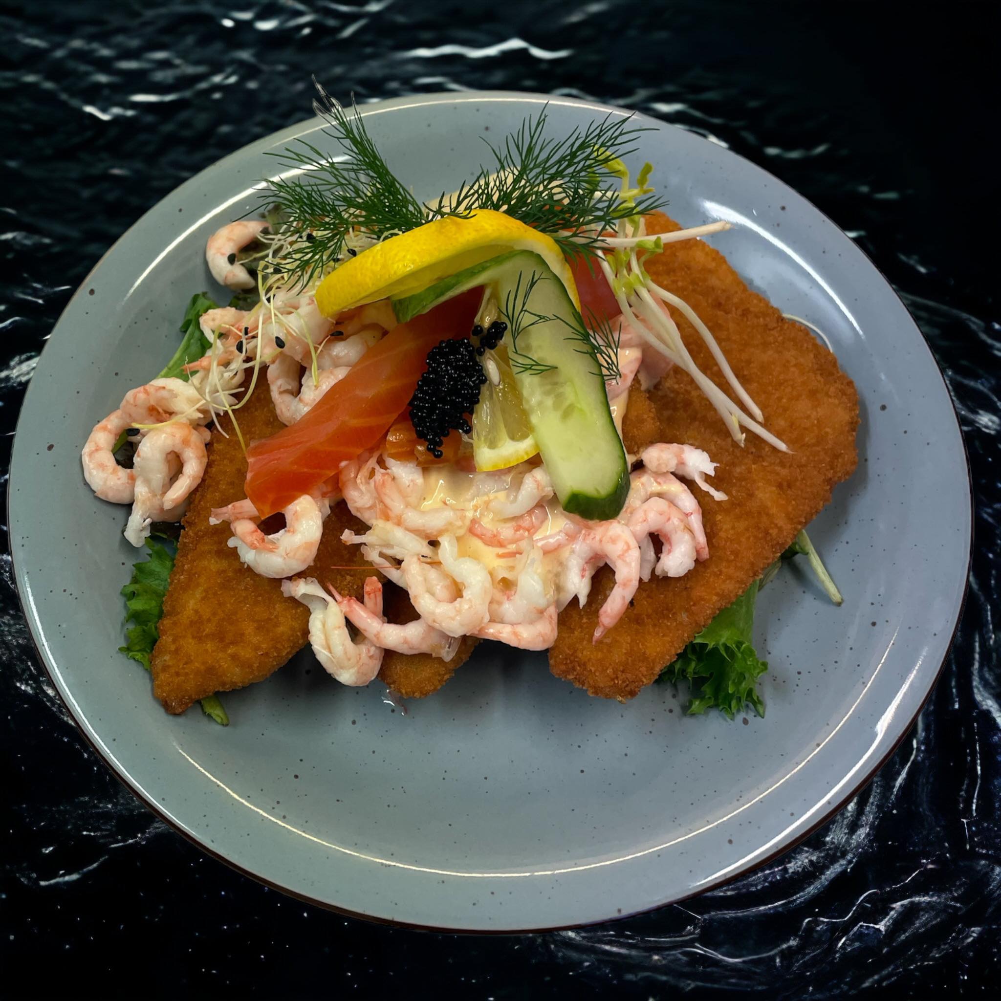 Træd ind i en verden af gastronomisk fortryllelse med vores sublime stjerneskud, hvor dansk rødspætte og håndpillede rejer forenes i en symfoni af smag og teksturer. Hver bid af vores stjerneskud er en hyldest til havets skatte og de kulinariske traditioner.