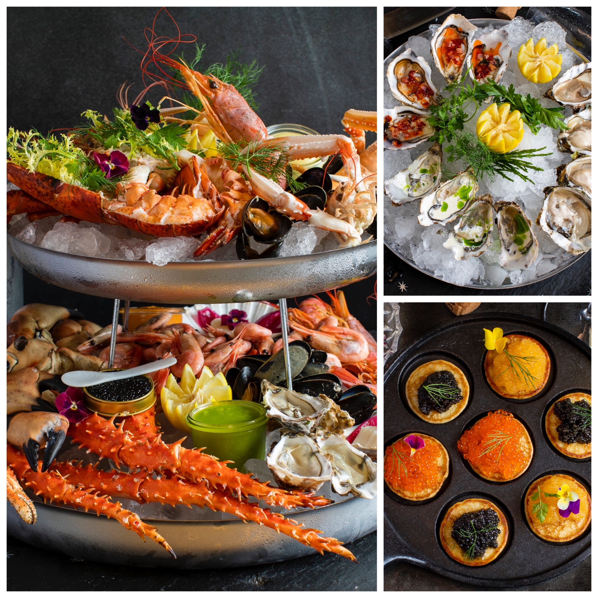 Caviar og østers kan tilkøbes til en fordelagtig pris.
