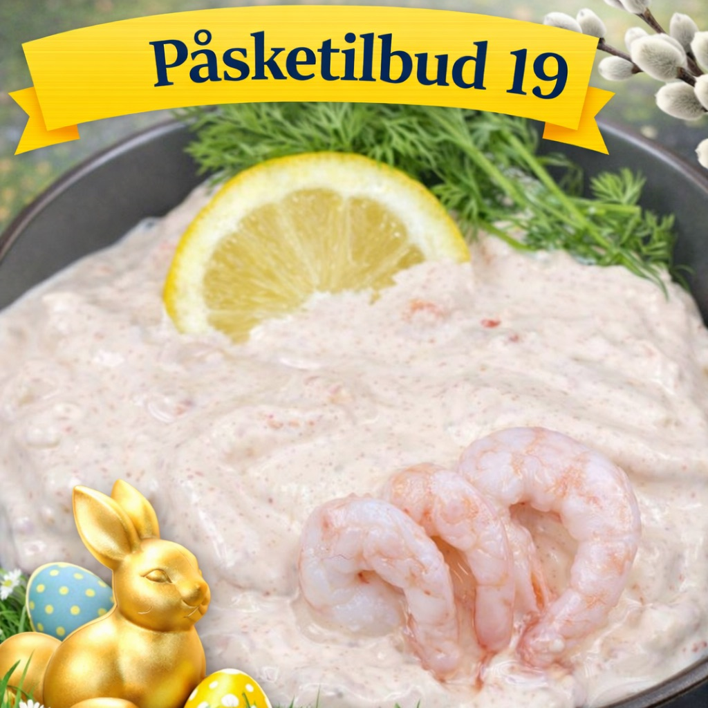 Vores skaldyrssalat er en af vores absolutte topsælgere – fyldt med delikate smagsnuancer og masser af gode råvarer. En sikker favorit, der løfter påskebordet til nye højder.