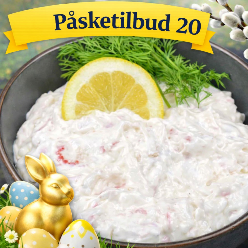 Vores Skagensalat er en af vores absolutte topsælgere – fyldt med delikate smagsnuancer og masser af gode råvarer. En sikker favorit, der løfter påskebordet til nye højder.
